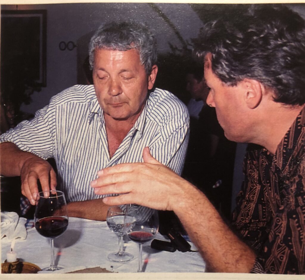 Dicke Regentropfen und ein Grollen am Himmel kündigen ein Gewitter an. Wir bestellen den Wein drinnen, einen Chateau la Tonelle 1989 Grand Cru. Henscheid erinnert sich einer Polemik gegen den Chef des Suhrkamp-Verlages, in der er auch über Grand Cru-Weine eine geschrieben habe, ohne zu wissen, was das sei. „Der Unseld hat – in einem Wahnsinns-Englisch – einen Joyce-Kongress in Zürich, mit einem Vortrag über Samuel Beckett bedient, und zwischenzeitlich ist er immer raus und hat sich um die Weinbestellungen gekümmert, dabei auch jede Menge Grand Cru“ – von Weinen, lautet die Pointe, verstünde Unseld viel, von Beckett weniger.