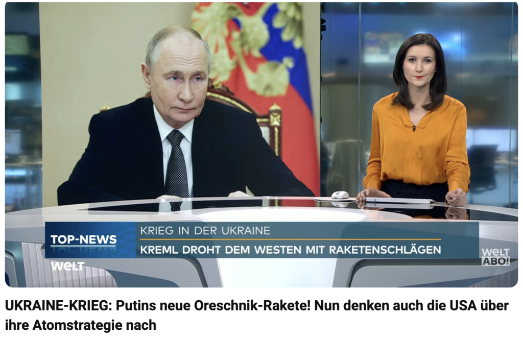Ein Donnerwort geht dieser Tage durch die Qualitätspresse. Das russische Wort für „Haselnuss“ beunruhigt von Bild bis Tagesschau alle. Eine russische Mittelstreckenrakete des Typs „Oreshnik“ hat in der Nacht vom 8. auf den 9. Januar 2026 im Rahmen eines Großangriffs der Russen einen Angriff auch auf ein für die Energieversorgung der ukrainischen Waffenindustrie und des Militärs kritisches unterirdisches Gaskraftwerk südlich von Lwiw ausgeführt. Erfolgreich. Es lässt sich nicht länger verheimlichen: die Russen verfügen über eine Wunderwaffe, die, im Unterschied zu den „Wunderwaffen“ der Begriffserfinder, den Namen verdient. Alle sind überrascht oder tun wenigstens so. Dabei hat Wladimir Putin die Welt bereits im November 2024 auf diese Waffe und ihre Eigenschaften detailliert aufmerksam gemacht. Ich habe damals darüber geschrieben.